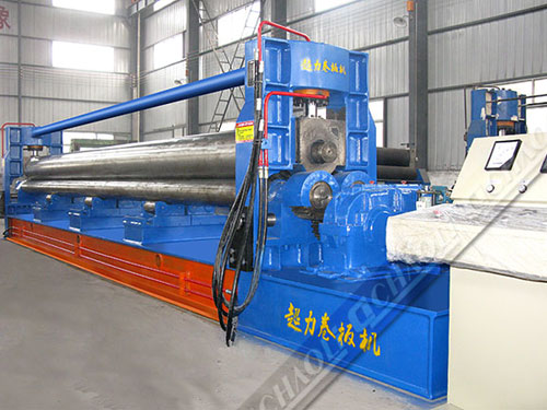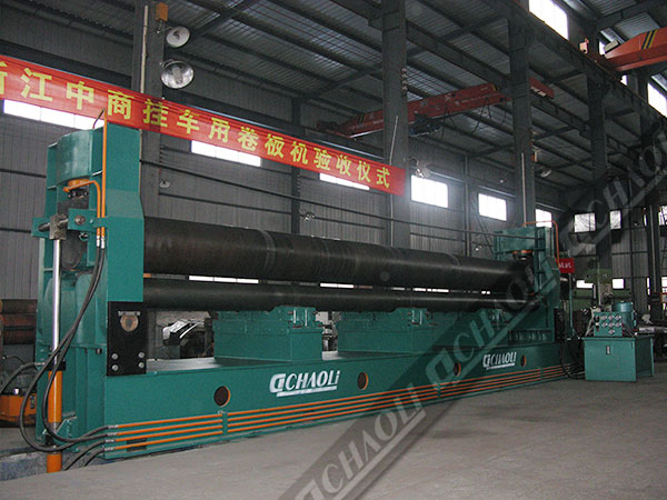 掛車用卷板機增加托輥及上輥撓曲補償可使筒件取得較好的直線度。可增加外托料架及內升料架使操作更便利,更少人工。可配合前后道工序作生產線優化使用。
